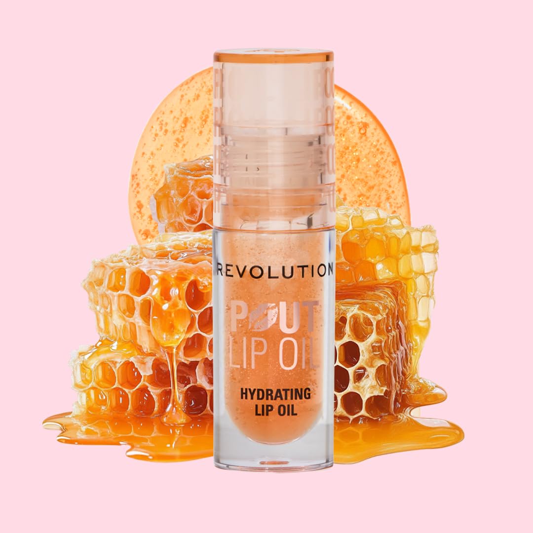 Revolution Beauty London, Pout Lip Oil, Nourishing Tinted Lip Oil, High Shine, Non-Sticky Finish, Vegan & Cruelty-Free, Honey Shimmer, 0.13 oz