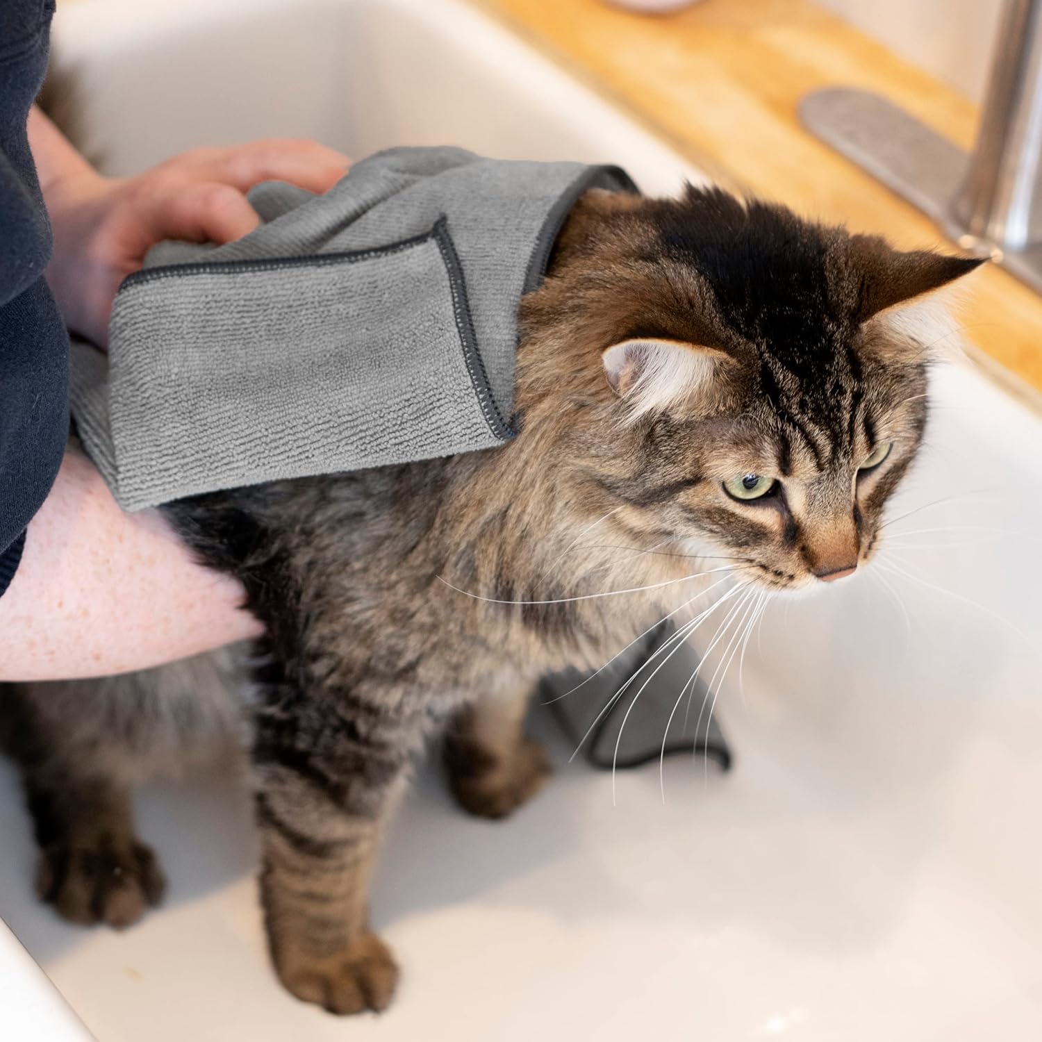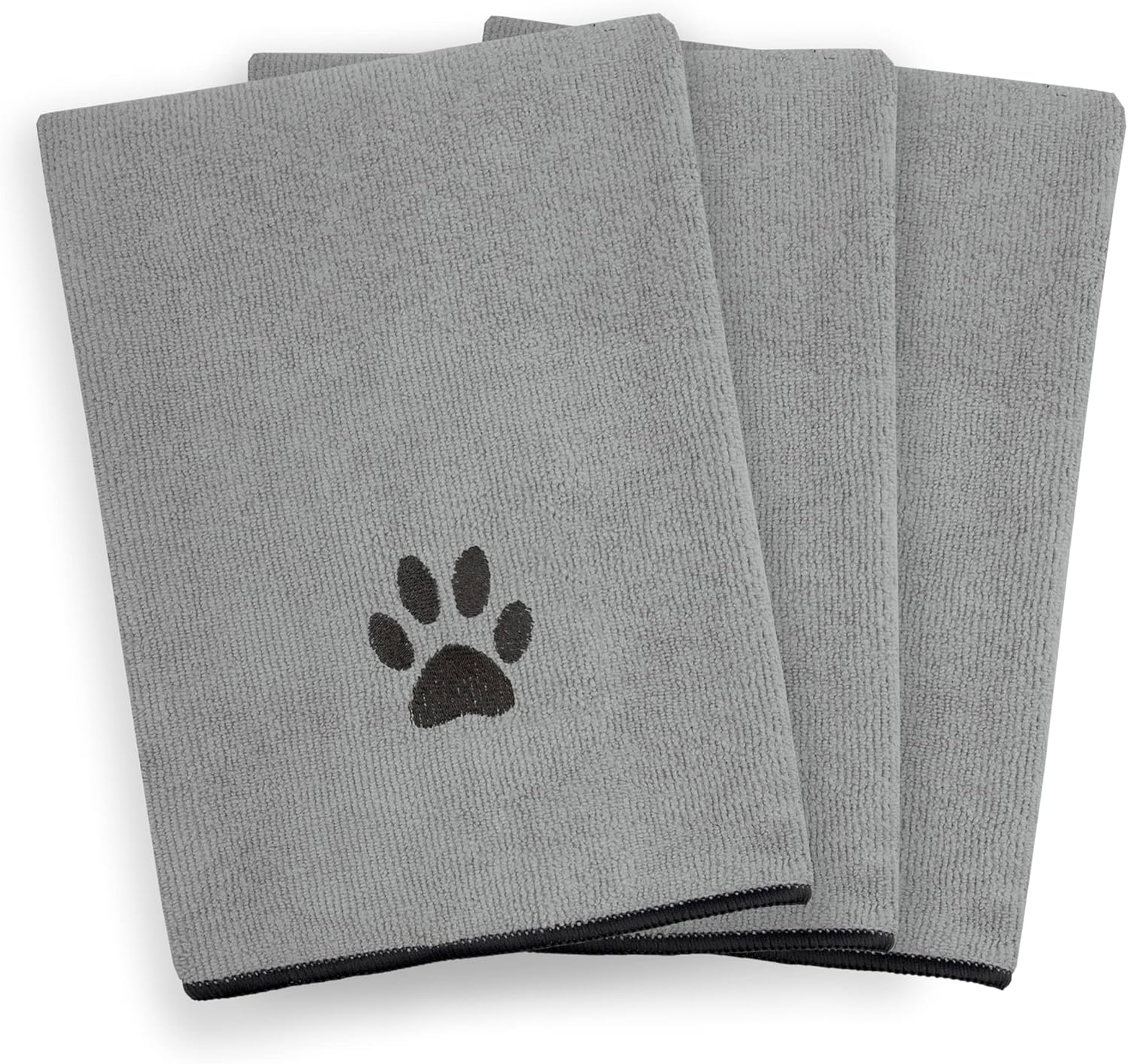Ritz Premium Embroidered Microfiber Pet Towel (3-Pack), 18″ x 28″, Highly Absorbent, Fast-Drying, Long-Lasting, Super Soft 80% Polyester and 20% Polyamide Pet Cloth, Grey