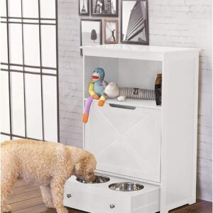 zoovilla Windsor Pet Feeders with storage – dog bowl stand, pet feeder station, White 13.78?D x 24.02?W x 35.04?H