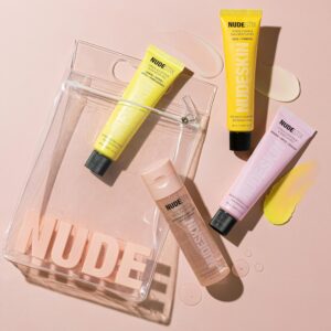 Nudestix Nude Essentials for Makeup – 4-Step Full-Size Skincare Set with Cleansing Balm, Toner, Exfoliator & Moisturizer/Primer | Clean, Vegan Skincare for Glowing, Makeup-Ready Skin | Travel-Friendly
